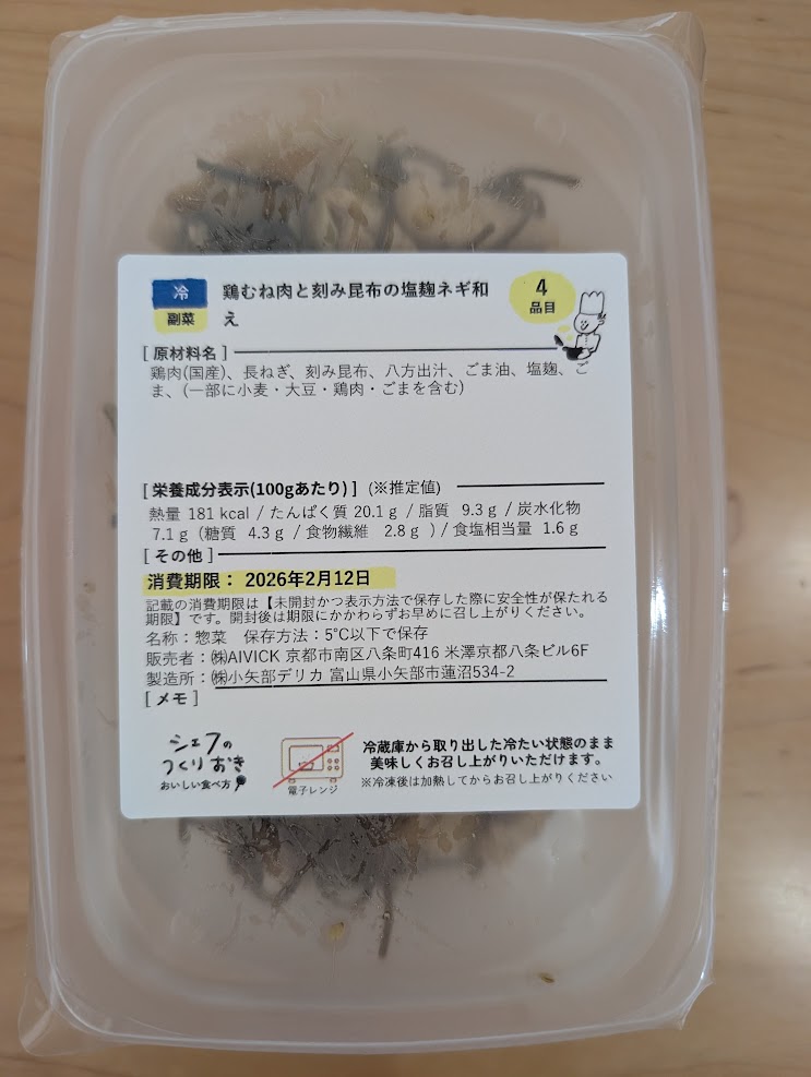 シェフの無添つくりおきは、食品添加物は可能な限り使わない宅配おかずサービスです(使用の添加物は豆腐のにがり、こんにゃくの水酸化カルシウムのみ)
