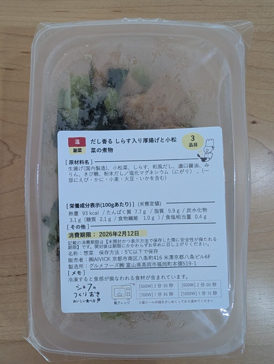 週1回主菜と副菜のセットがクール便で届く。4日間持つからメインで食べたりおかずの足しにしたりする。