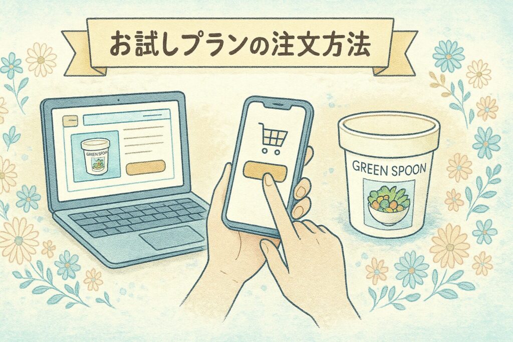 グリーンスプーンには、初めて注文の方だけが利用できる「初回特別!キャンペーン」というお試しプランがあります。「グリーンスプーンはどんな感じなんだろう?」と気になる方は、まずはお試しプランでの注文がおすすめです。お試しプラン利用後は、定期購入に移行するので、間隔を設定しましょう。