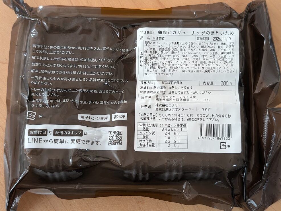 1食あたりカロリーは350kcal以下、糖質25g以下、脂質20g以下、塩分も2.5g以下、野菜を120g以上使用と設計されているのが特徴です。ダイエット中や夜遅い時間の食事、産後の体調管理にも取り入れやすく便利に利用できます。