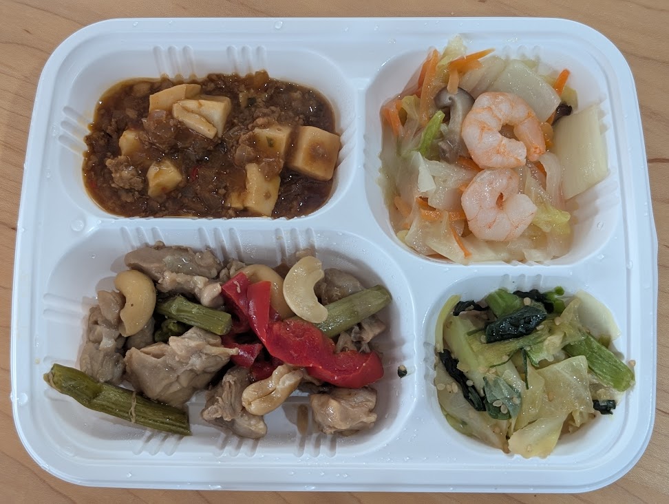 メインの鶏肉とカシューナッツ炒めは、上品な味付けで、黒酢も程よいアクセントでした。麻婆豆腐は、ほどよい辛みとしっかりとしたうま味でおいしかったです。お豆腐は冷凍品とは思えないクオリティでした。こちらも野菜がたっぷりで、ヘルシーで贅沢感のあるメニューでうれしいメニューですね。