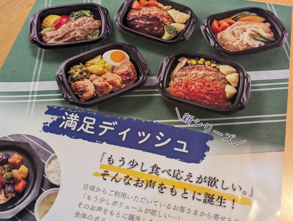 また、「満足ディッシュ」というボリュームのあるシリーズもあります。ボリュームを出しつつカロリー450kcal以下・食塩相当量2.5g以下で管理栄養士が設計したメニューです。