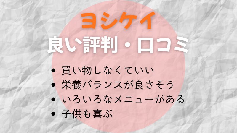 ヨシケイには良い評判・口コミもたくさんあります。気になる方は、まずは「お試しセットで判断する」のが安心です。