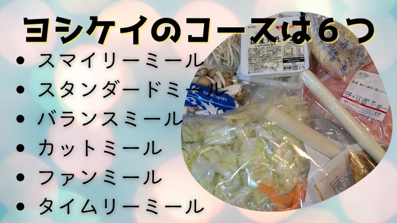 ヨシケイのミールキットの強みは、目的に合わせて選べるメニューコースの多さです。
