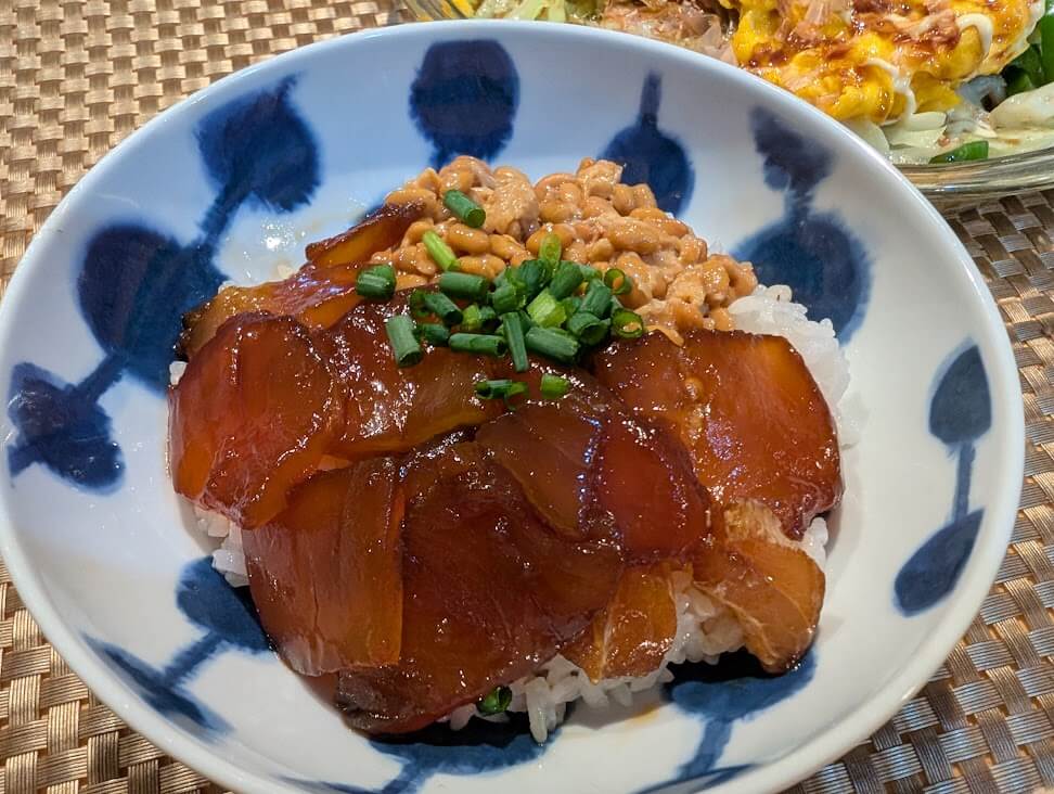 まぐろは静岡県産、味付けは化学調味料無添加で安心して食べられました。お好み焼き風の炒め物が、予想以上においしかったです。